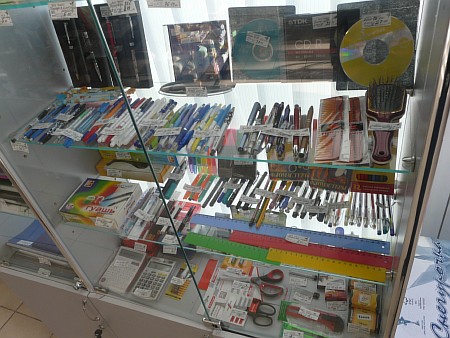 В "Любимом магазинчике" можно приобрести необходимую учебную литературу, канцтовары, сувениры. В продаже имеются эксклюзивные вещи в стиле "Батик", Павлопосадские платки (100% шерсть), Оренбургские палантины, платки, шарфы, зонты фабрики "Москва-зонт" и всевозможные новогодние подарки.