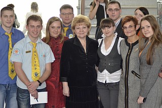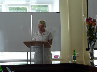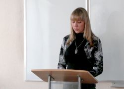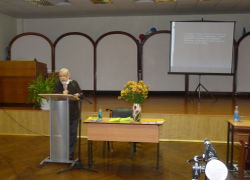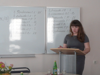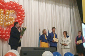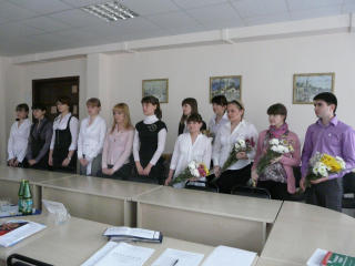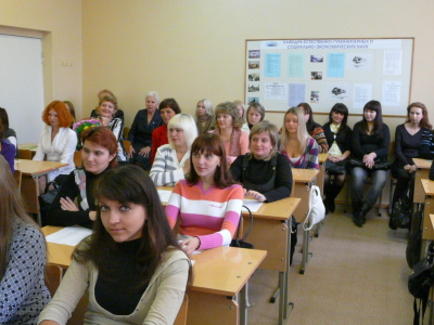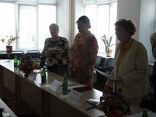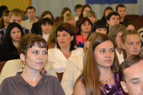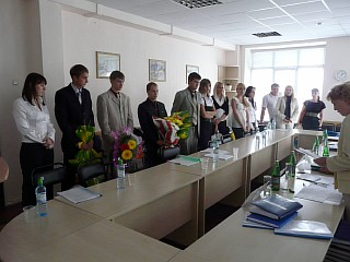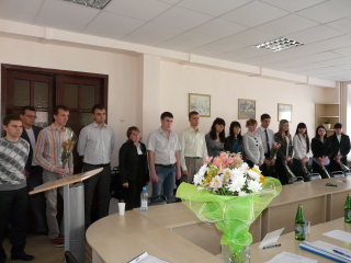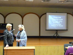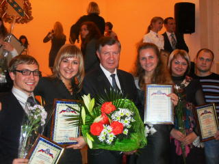 Начало встречи было праздничным и торжественным - Ректор Окорокова Галина Павловна подвела итоги внутривузовской олимпиады по экономической теории, которая была проведена 17 ноября. Участники и победители получили заслуженные награды.