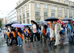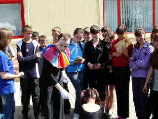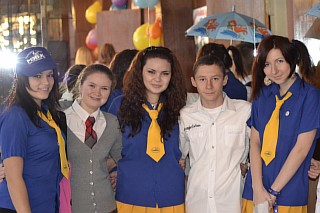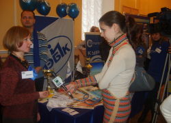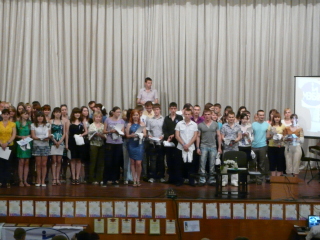 В Доме знаний состоялась традиционная церемония Посвящения слушателей подготовительного отделения. С приветственным словом и практическими советами к виновникам торжества обратились бывшие выпускники подготовительного отделения, а ныне студенты МЭБИК, которые вели прямые репортажи на виртуальном канале студенческого телевидения из самых невероятных мест: лекционной аудитории, знойно-африканской страны, Министерства высшего образования 2 курса, и даже скрытой камерой из мужского туалета третьего этажа... В спринтерском конкурсе по устному счету были разыграны: корпоративный подарок МЭБИК, свидетельство на право приобретения жевательной резинки БЕСПЛАТНО(!), 2 билета на взрослую студенческую дискотеку, почетное право пожать руку РЕКТОРУ (запросто!), и СУПЕРПРИЗ - сертификат на скидку в оплате за обучение в целых 10%! Не остались в долгу и именинники: в превосходных степенях они описали свои первые впечатления о ставшем уже родным МЭБИКЕ.