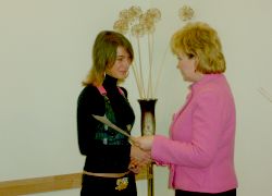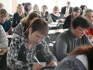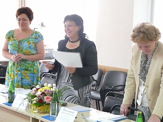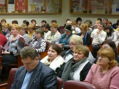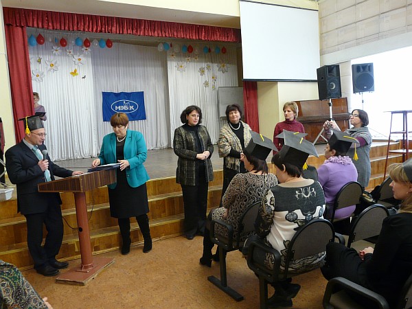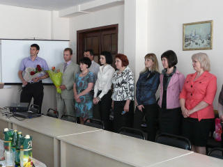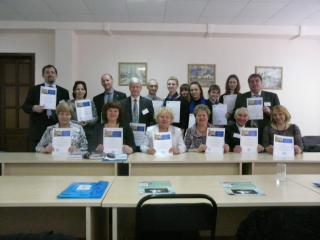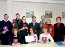 В торжественной обстановке глава Администрации города Курска Овчаров Н.И. и ректор МЭБИК Окорокова Г.П. вручили слушателям удостоверения о повышении квалификации государственного образца и новогодние подарки.