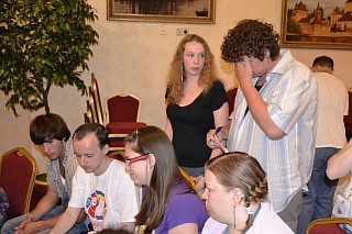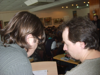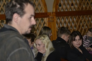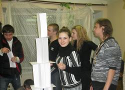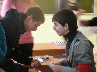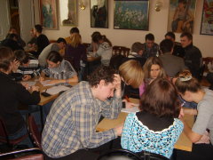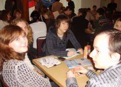 Состоялся очередной турнир в клубе "Что? Где? Когда?". В фойе малого зала интеллектуальная элита института соревновалась за призы (сладенькие тортики). Первое место - за командой "Лодыри" (группы Э-391 и У-351), Бэмс (менеджмент) - вторые, а "Банда" (УиСО) - третьи. Кому же достанется главный приз по итогам всего сезона?