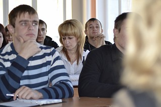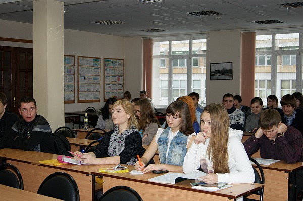 В малом зале произошло очень важное для нашего института событие: в гости к курским студентам МЭБИК приехали студенты очного отделения из Железногорского филиала.