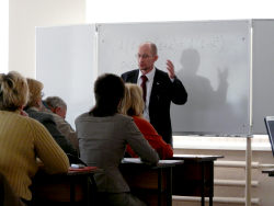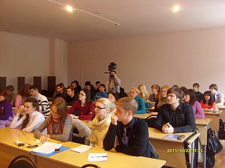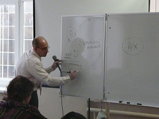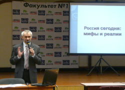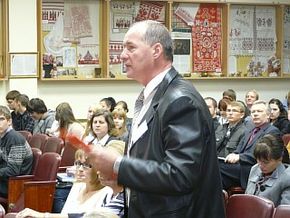 В Малом зале "Дома знаний" состоялась лекция профессора МГУ, Государственной Академии управления, РАГС при президенте РФ, профессора МГИМО МИД РФ, профессора и заведующего кафедрой политического консалтинга и избирательных технологий Государственного университета - Высшей школы экономики, вице-президента Российской ассоциации по связям с общественностью (РАСО), а также члена многих международных, Европейских и Американских ассоциаций в области Public Relations Ситникова Алексея Петровича на тему: Моя "Оранжевая революция". Алексей Петрович, являясь непосредственным участником тех событий, подробнейшим образом рассказал, как она была организована и поделился с нами обширными видеоматериалами, после чего был буквально засыпан вопросами студентов о морально-этической стороне вопроса.