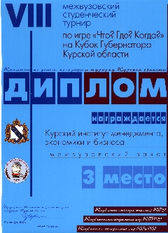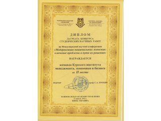 23-24 января 2006 года на базе Курского института менеджмента, экономики и бизнеса прошел III этап Всероссийской областной олимпиады школьников по экономике. В олимпиаде приняли участие 42 школьника из школ г. Курска и Курской области (Золотухинский район, Октябрьский район, г.Курчатов, Курский район).