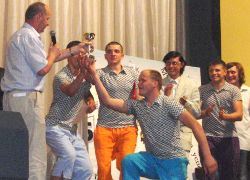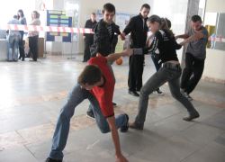 В "Гелиосе" состоялся городской фестиваль КВН. На сей раз в нем приняла участие сборная института, которая состояла из команд "Туши свет" и "Парадигма". Творческое слияние пошло всем нам на пользу, поскольку объединение острых умов опытных игроков из числа второкурсников в сочетании с энтузиазмом первокурсников дало нужный результат - мы прошли в конкурс! И теперь участвуем в 1/8 финала игр клубов вузов города. Успехов вам, веселые и находчивые!!!