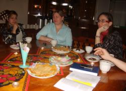 После концерта состоялась самая приятная часть знакомства - чаепитие; за чашкой чая молодые люди договорились о том, что такие встречи должны стать традиционными. В ближайших планах - совместное празднование Всероссийского праздника студентов - Татьянина дня.