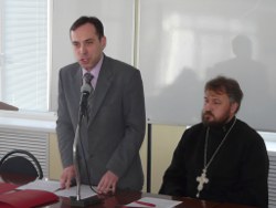 Состоялась встреча с известным богословом, профессором Московской духовной академии диаконом Андреем Кураевым. Тема встречи: "Пути диалога церкви и общества"