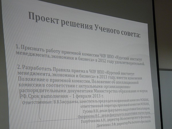 На очередном заседании Ученого совета МЭБИК были подведены итоги работы приёмной комиссии вуза и заслушан отчет о работе отдела аспирантуры в 2012 году.