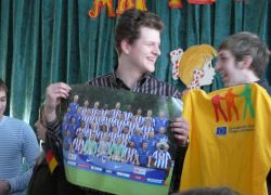 Во второй половине дня состоялась деловая игра "Communication", которая состояла из трех этапов: интеллектуальный, эстафета, творческий. Немецким школьникам очень понравилась игра, особенно эстафета и творческий этап.